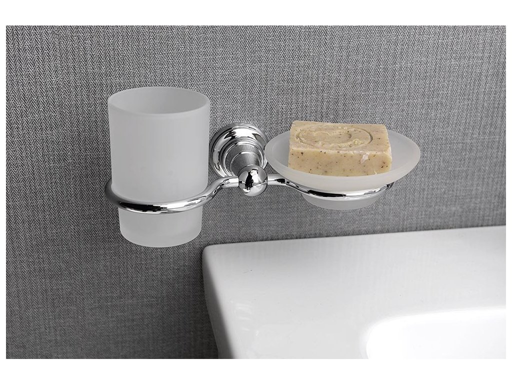 DIAMOND držiak na kefky s mydeľničkou, mliečne sklo, chróm