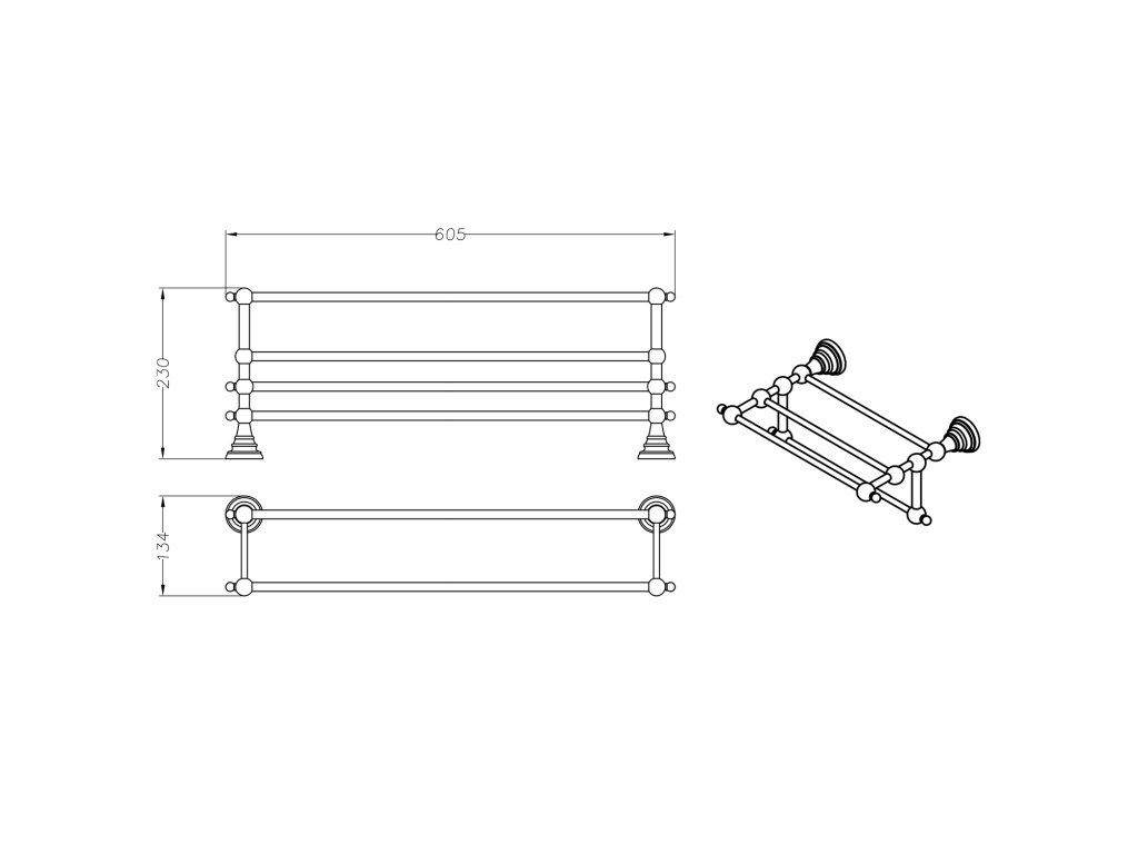 DIAMOND polička na uteráky s hrazdou 600mm, bronz