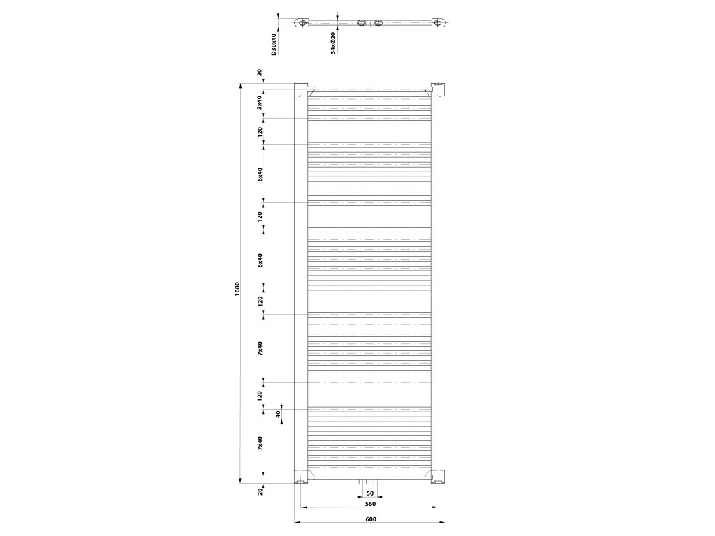DIRECT vykurovacie teleso s stredovým pripojením 600x1680 mm, biela