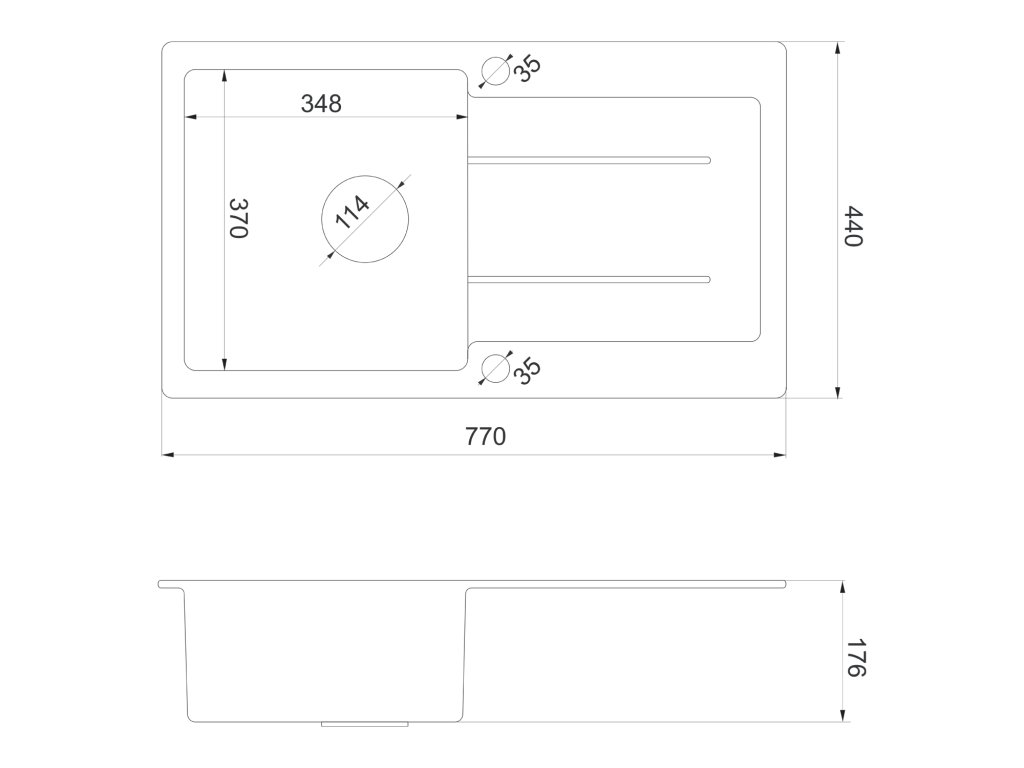 Drez je usadený na pracovnú dosku a hranou ju prevyšuje. |
