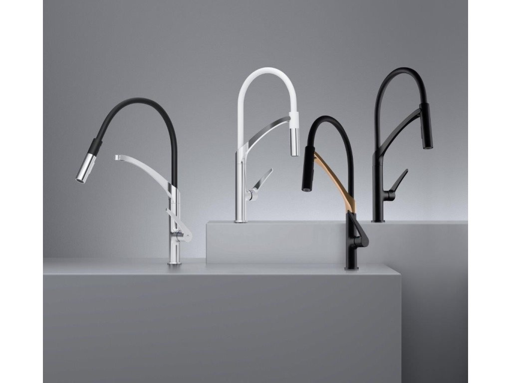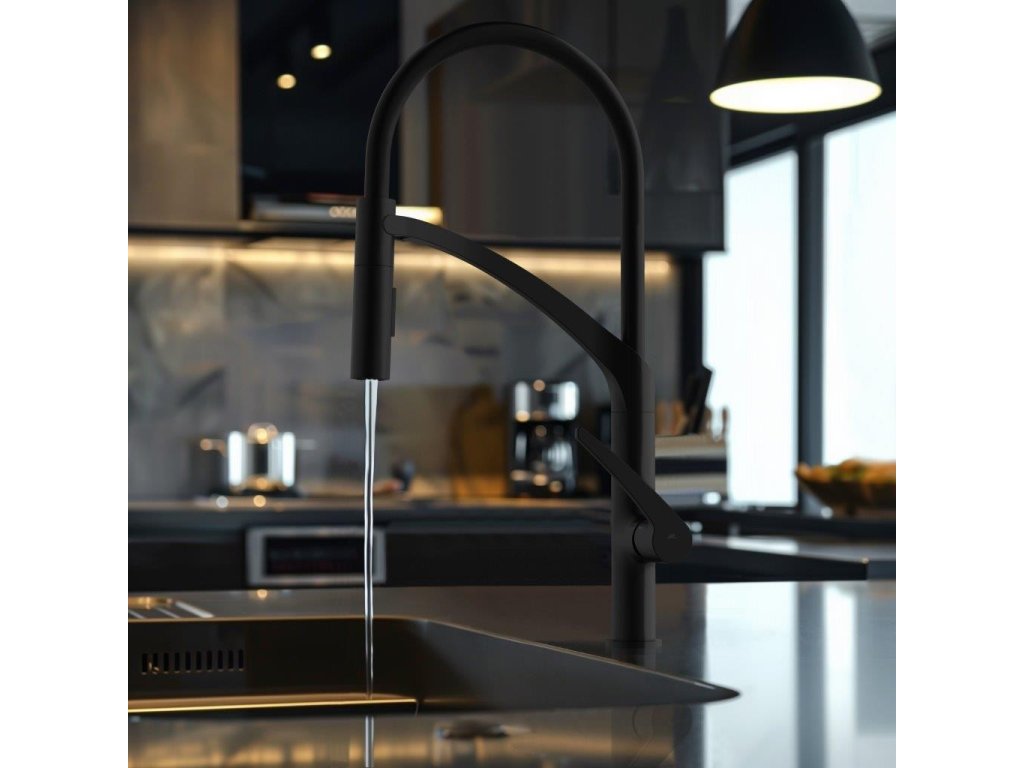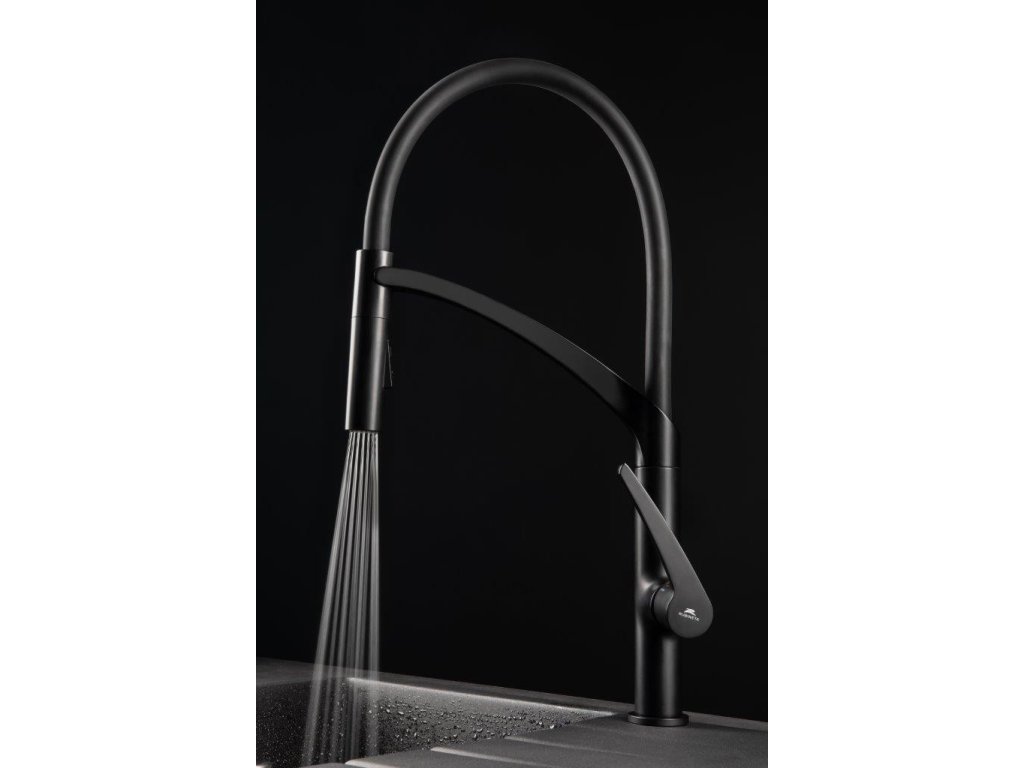 - Flexibilné masívne rameno so spŕškou v čiernej farbe, uchytávanie spŕšky pomocou magnetu