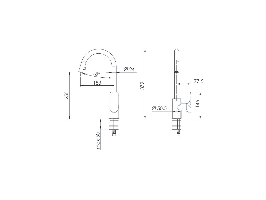 Otočná drezová stojanková batéria ARNO 84 s výsuvnou sprchou vyniká vysoko kvalitným spracovaním a spoľahlivou funkčnosťou všetkých súčastí a materiálov.