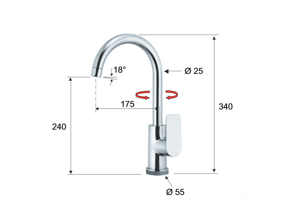 Otočná drezová stojanková batéria FONTI T72 s dotykovým ovládaním vyniká vysoko kvalitným spracovaním a spoľahlivou funkčnosťou všetkých súčastí a materiálov.
