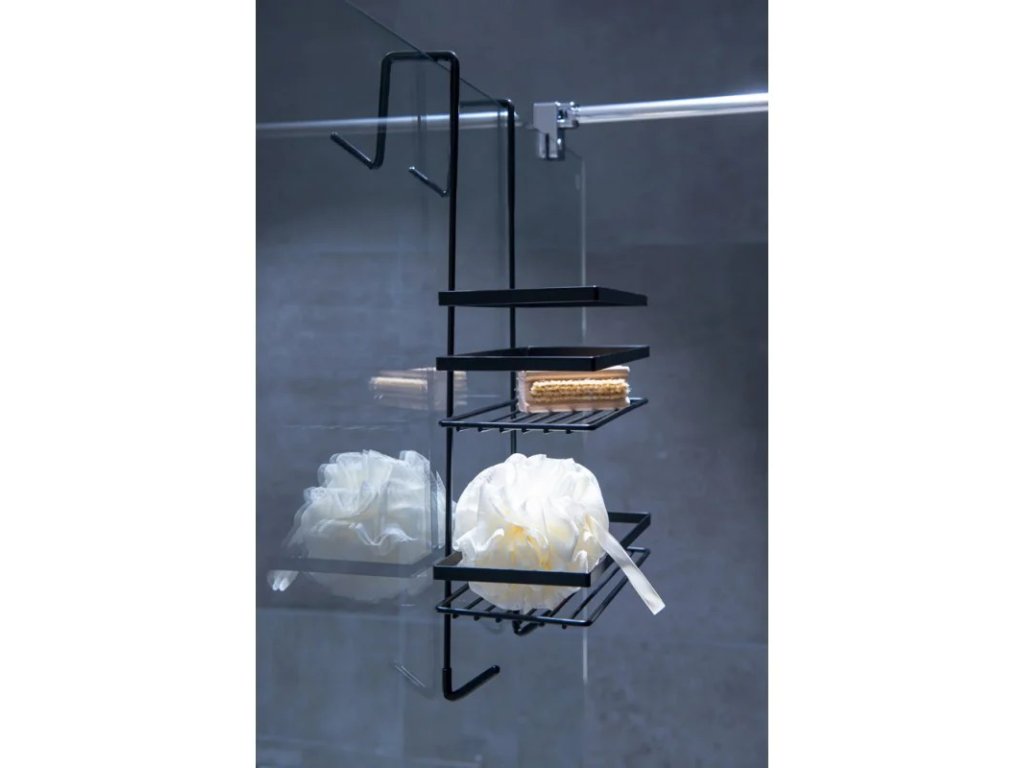 Drôtená polička s čistým elegantným dizajnom v modernej čiernej farbe , ktorá sa hodí do každej modernej kúpeľne. Polička je určená na zavesenie napríklad za sklo sprchového kúta. Praktický pomocník na usporiadanie vybavenia Vašej kúpeľne. Jej praktické tvary oceníte najmä v sprchovacích kútoch . Povrchová úprava zaisťujú odolnosť voči korózii a vlhkosti .