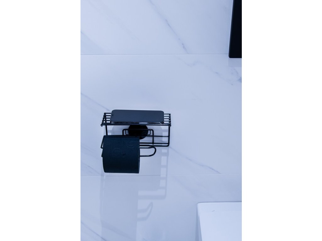 Praktická a elegantná polička s držiakom toaletného papiera na nalepenie . Držiak z kvalitnej, čierno lakovanej ocele . Samolepiace kúpeľňové doplnky sú ideálnym riešením, ak nechcete vŕtať do obkladov . Veľmi kvalitná lepiaca páska 3M priľne k rôznym povrchom a umožňuje ľahké odstránenie doplnkov bez zanechania stôp či poškodenia. Jeho maximálna nosnosť je 4 kg.