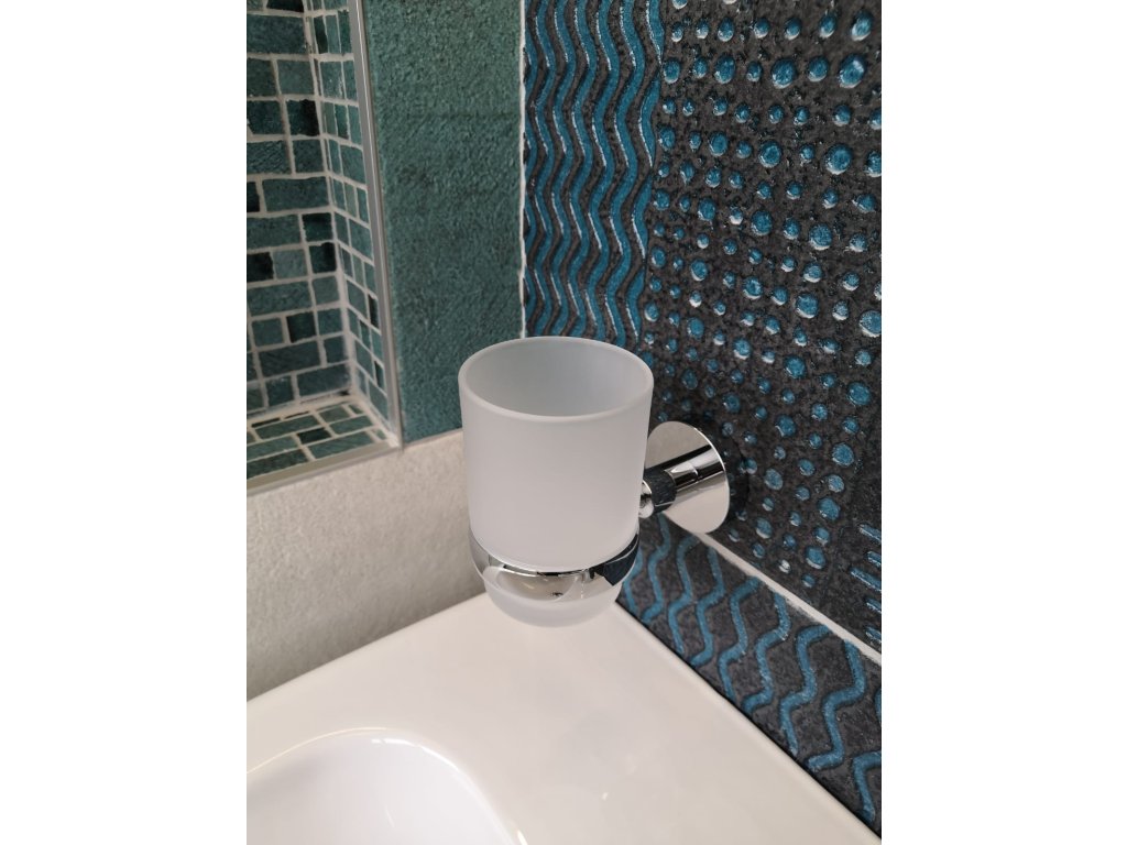 Klasický chromový držák s pískovanou skleničkou se skvěle hodí ke všem umyvadlům. Sklenička vám každý den zpříjemní osobní hygienu.