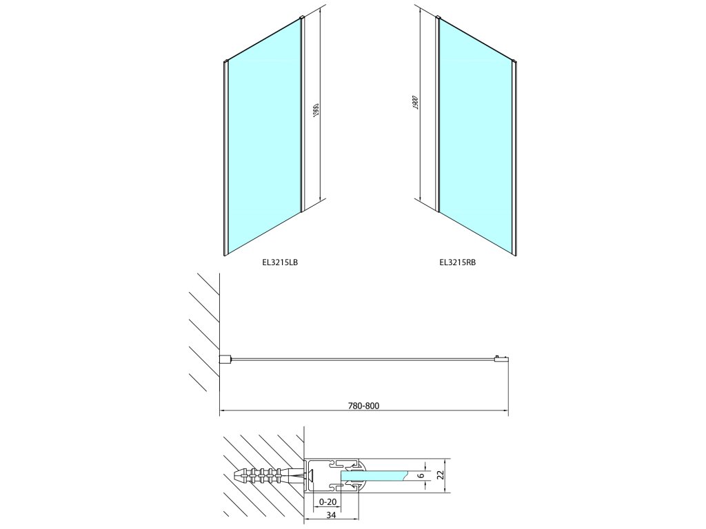 EASY BLACK sprchová bočná stena 800mm, číre sklo