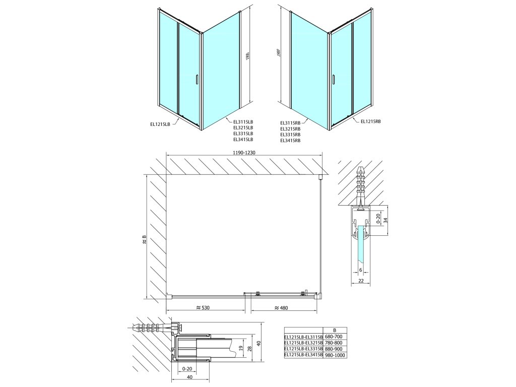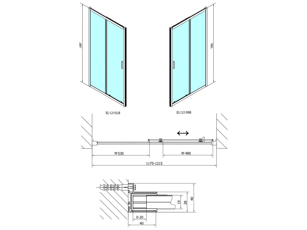Inštalačná šírka do | 1215 mm |