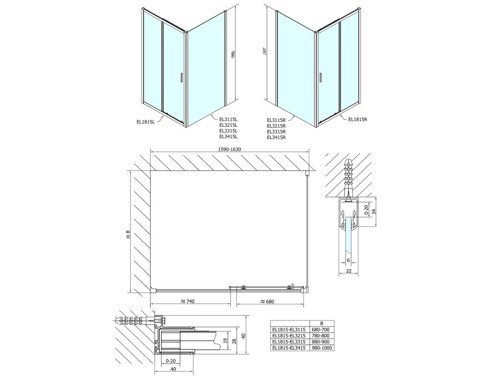 EASY obdĺžniková sprchová zástena 1600x700mm L/P varianta