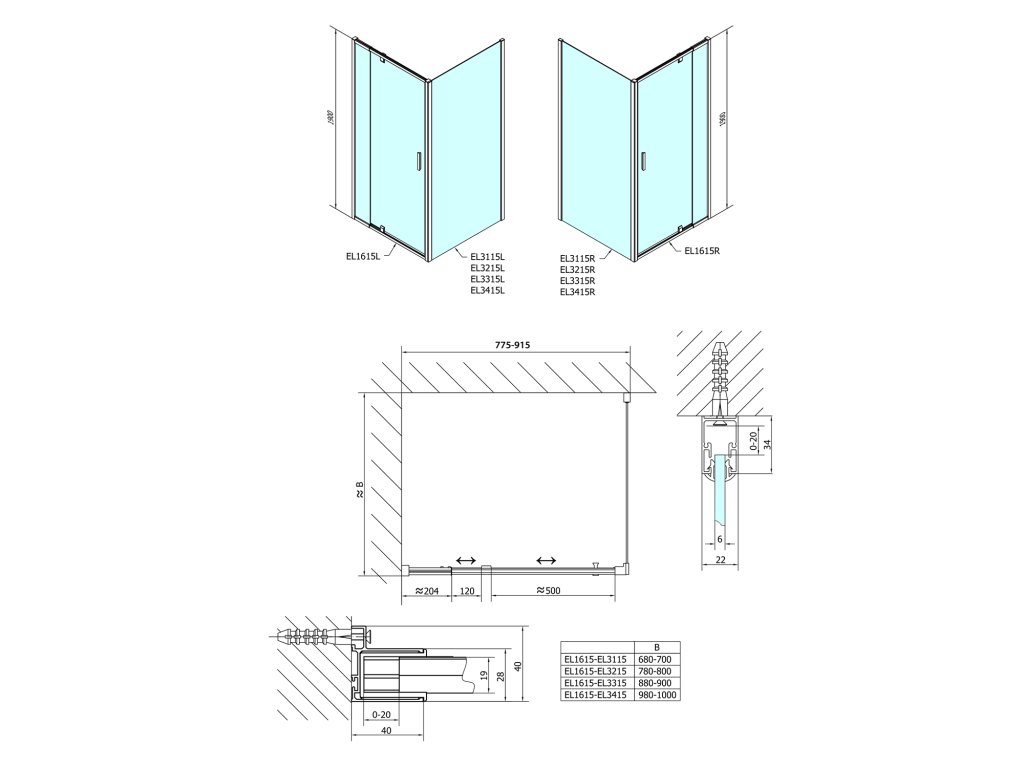 EASY obdĺžniková/štvorcová sprchová zástena pivot dvere 800-900x900mm L/P v