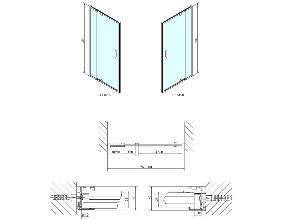 EASY otočné sprchové dvere 760-900mm, číre sklo