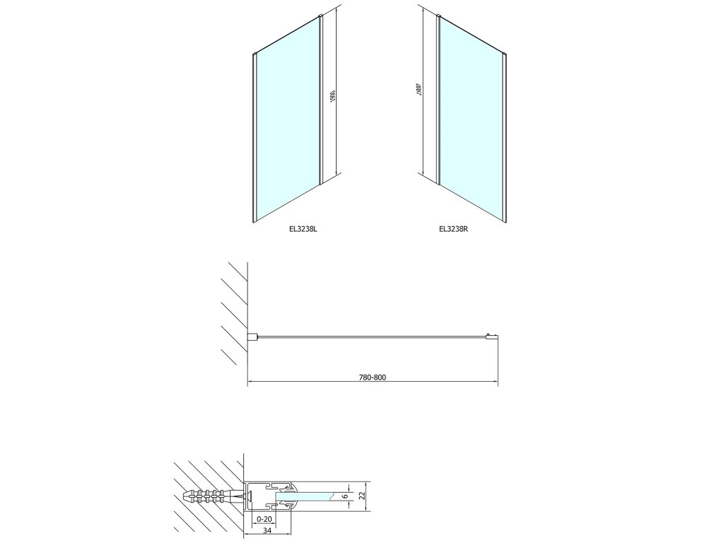 Tvar: | Pevná stena k sprchovacím dverám |
