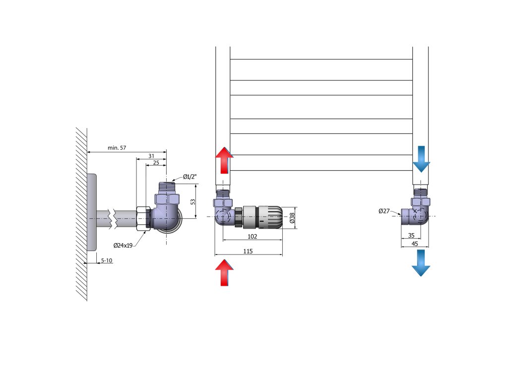 Výbava: | Termostat, hlavica vľavo;Bočné |