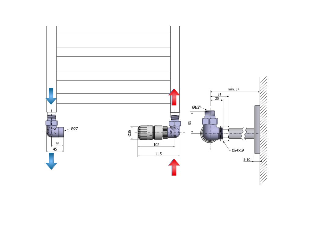 Výbava: | Termostat, hlavica vpravo;Bočné |