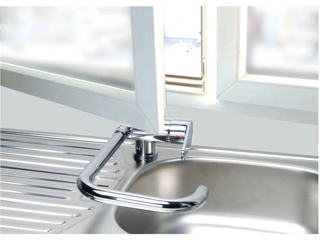 Sklopná kuchynská batéria Eisl Flexo je určená do kuchyne, kde je drez umiestnený pod oknom alebo v tesnej blízkosti okna. Tento typ batérie je navrhnutý tak, aby umožňoval pohodlné použitie bez toho, aby prekážal pri otváraní a zatváraní okna.