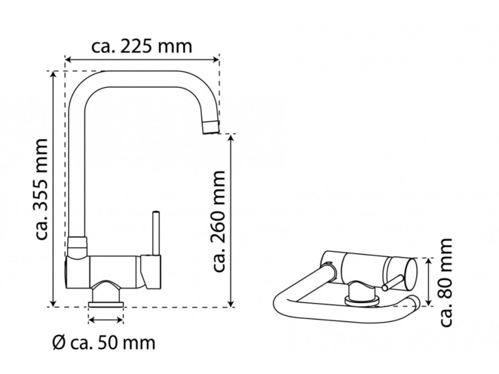 - výlevku je možné horizontálne sklopiť o 90 ° - ideálna pre inštaláciu pod okno