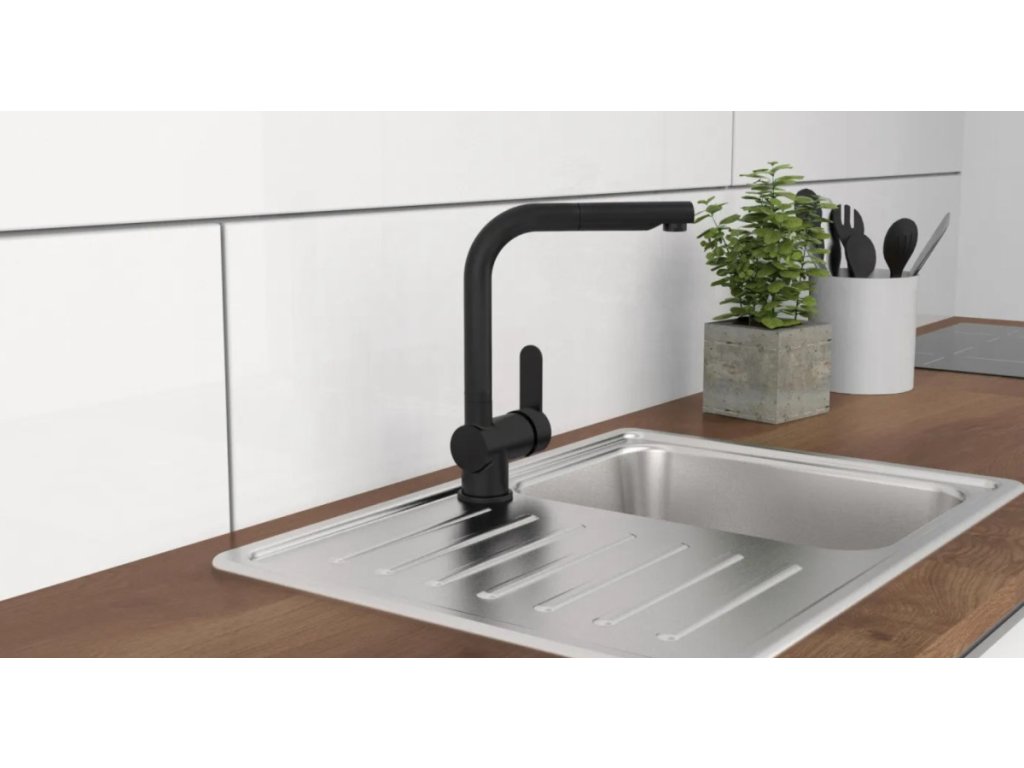 - kuchynská batéria s otočným výtokom o 360 ° C, ideálna pre dvoj drezy