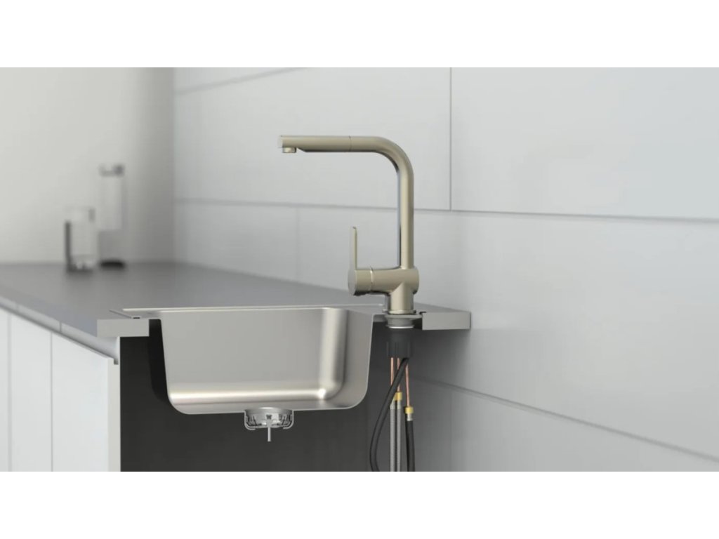 Batéria Eisl London bude skvele vyzerať nielen v klasickom prevedení kuchyne, ale bude sa vynímať aj ako ostrovčeková batéria. Jednopáková batéria s energetickou úspornou funkciou studeného štartu - to znamená, keď je páka v strednej polohe, priteká iba studená voda. Kuchynská batéria s výtokom otočným o 360 ° - ideálna aj pre dvojité drezy. Predĺžiteľná sprchová hadica (150 cm) pre pohodlné ovládanie.
