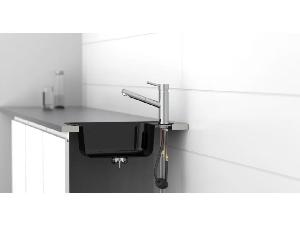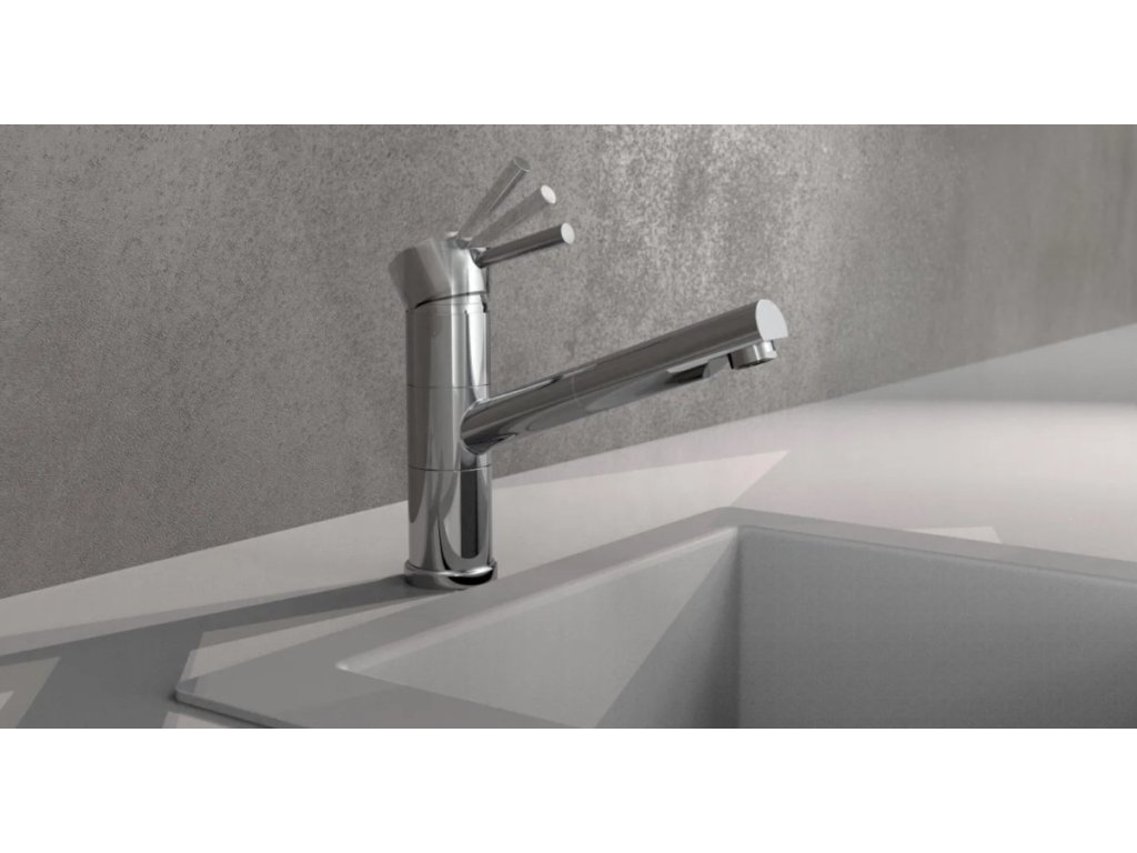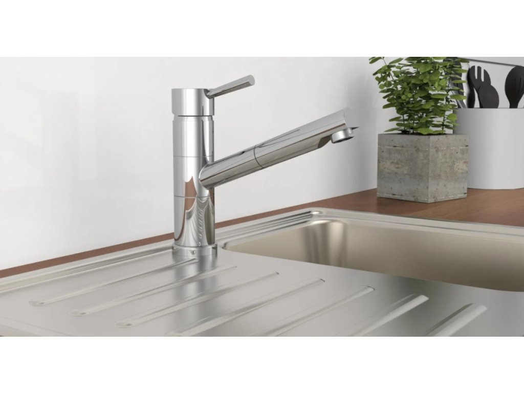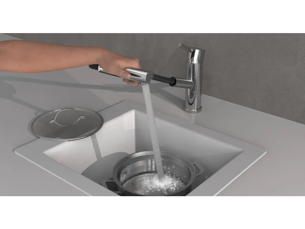 Eisl Unicorn je páková batéria so spŕškou vyrobená z kvalitného nerezu. Táto kuchynská batéria je vybavená funkciou Eco-Click . Pri nadvihnutí páčky začne najskôr tiecť voda s menším prúdom, ktorý je dostatočný na pohodlné umývanie riadu. V prípade, že potrebujete silnejší prúd vody, páčku je potrebné nadvihnúť viac, čo je sprevádzané cvaknutím. Vďaka tejto funkcii môže drezová batéria Eisl Unicorn ušetriť až 50% vody v porovnaní s bežnou pákovou batériou.