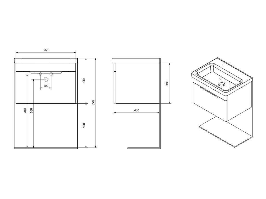 ELLA umývadlová skrinka 56,5x39x43cm, biela