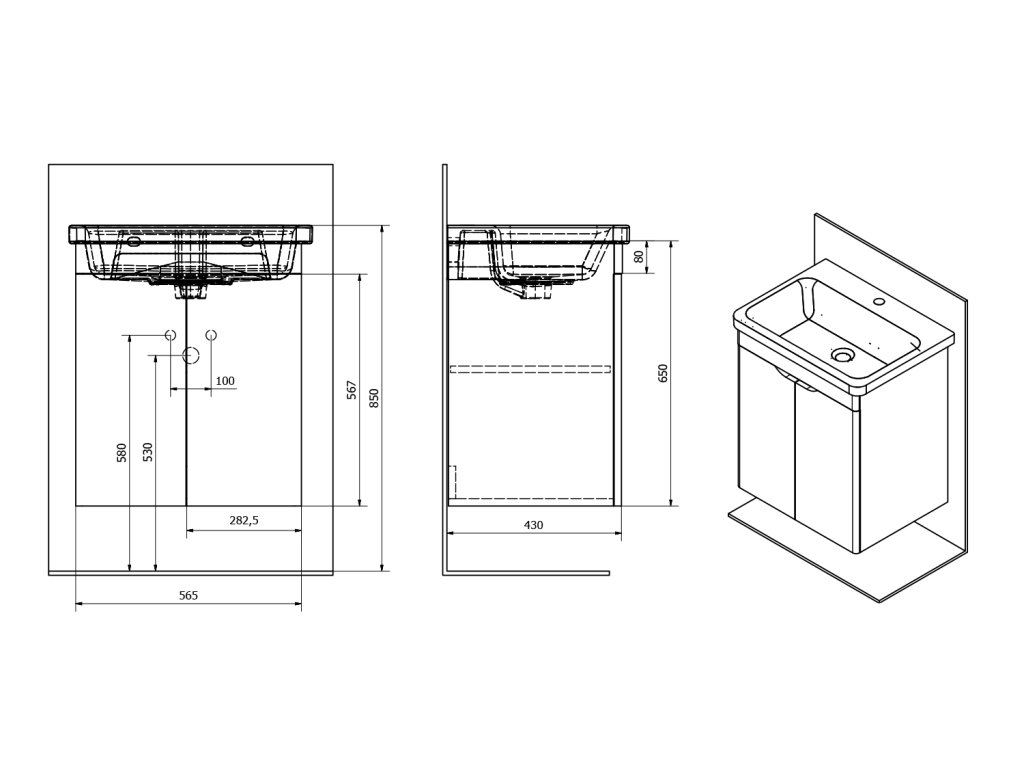 ELLA umývadlová skrinka 56,5x65x43cm, 2x dvierka,biela