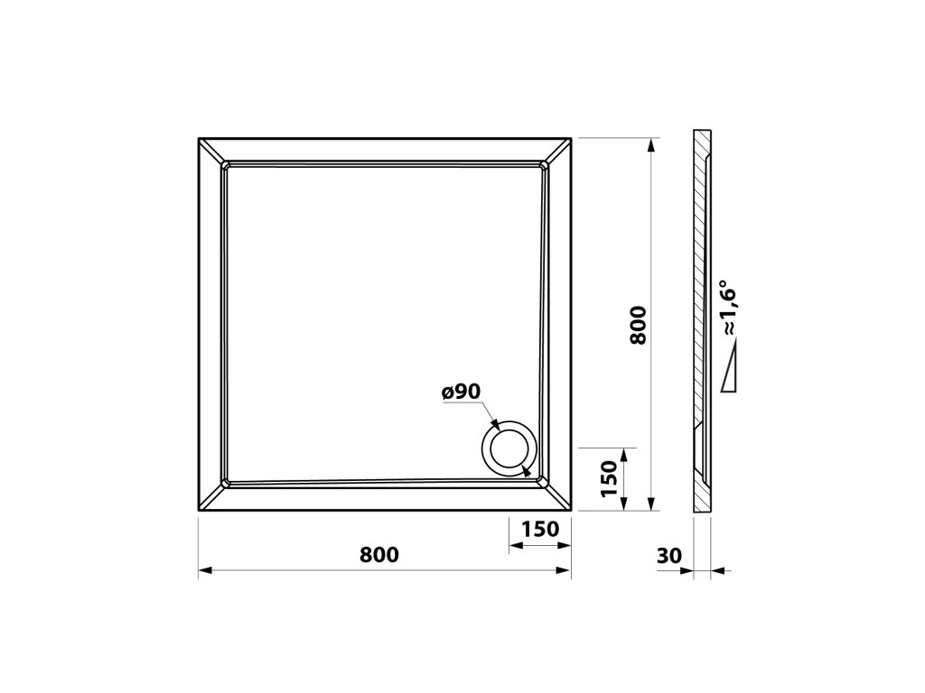 ELSE sprchová vanička z liateho mramoru, štvorec 80x80cm, biela