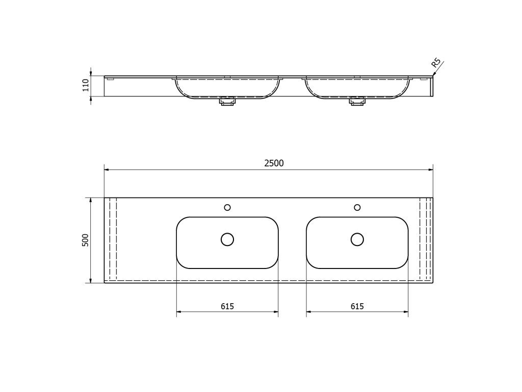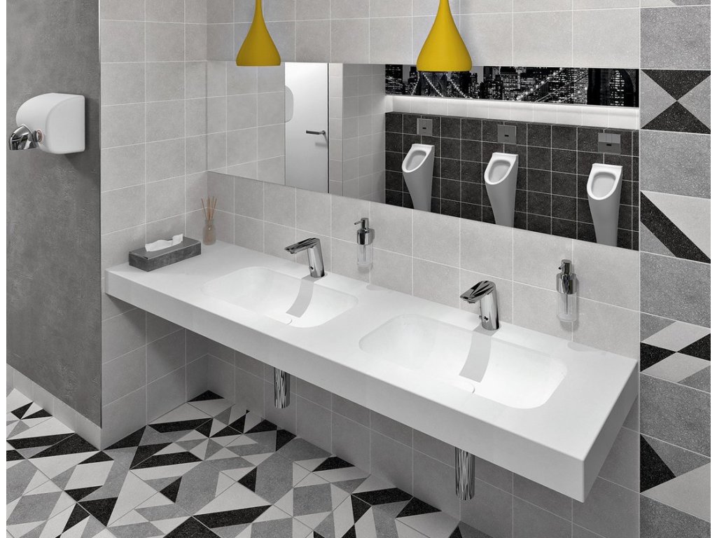EMICO dvojumývadlo vpravo, 250x50 cm, prevedenie límca L, Rockstone biela matná