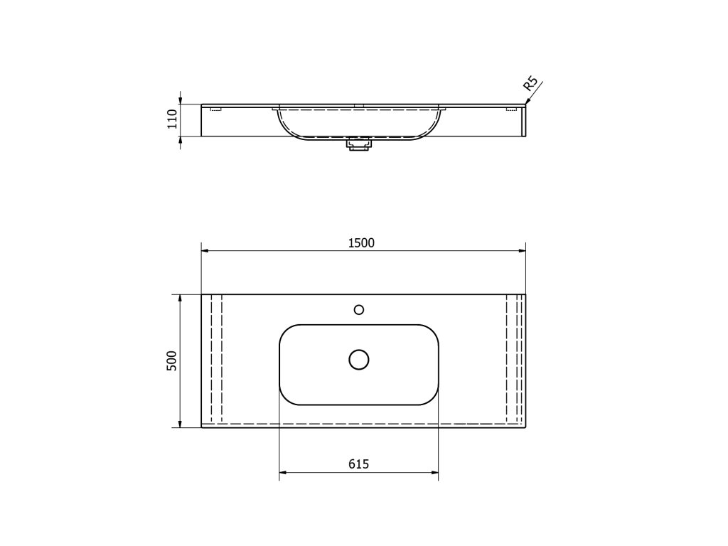 EMICO umývadlo, 150x50 cm, prevedenie límca L, Rockstone biela matná