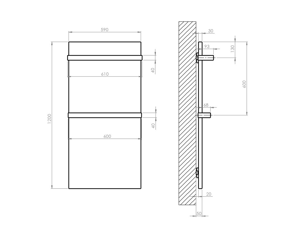 ENIS kúpeľňový sálavý vykurovací panel 600W, IP44, 590x1200 mm, čierna mat