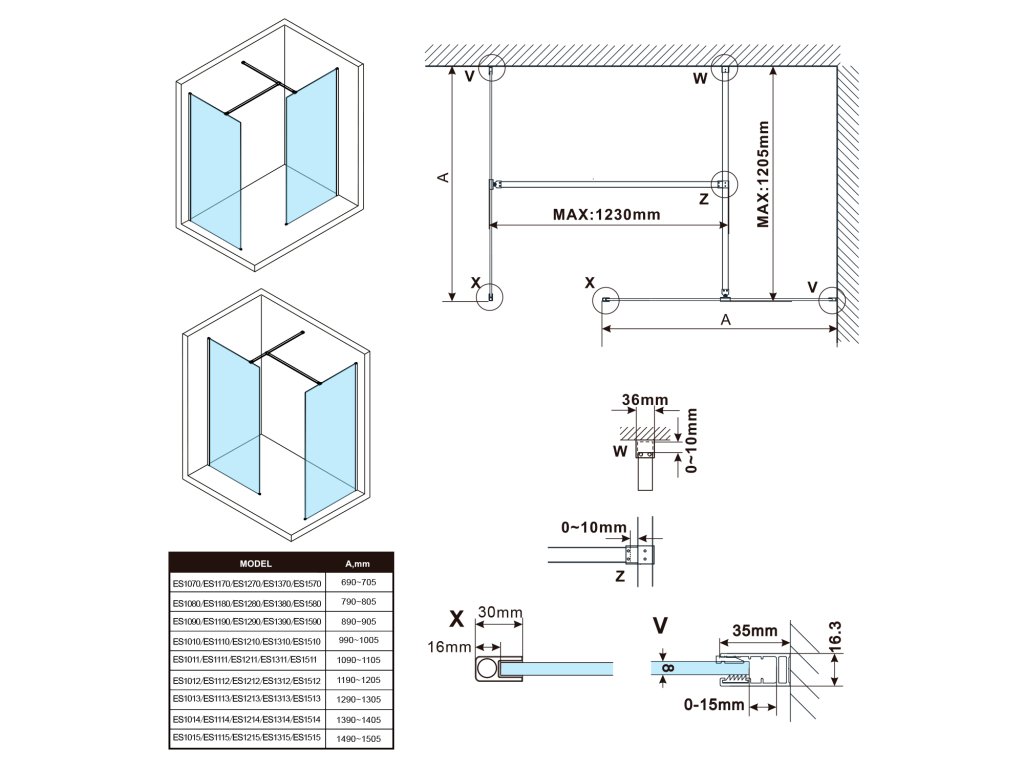 - Stenové profily s toleranciou 15 mm uľahčujú stabilnú montáž zásten, inštalácia je možná na dlažbu alebo sprchovú vaničku