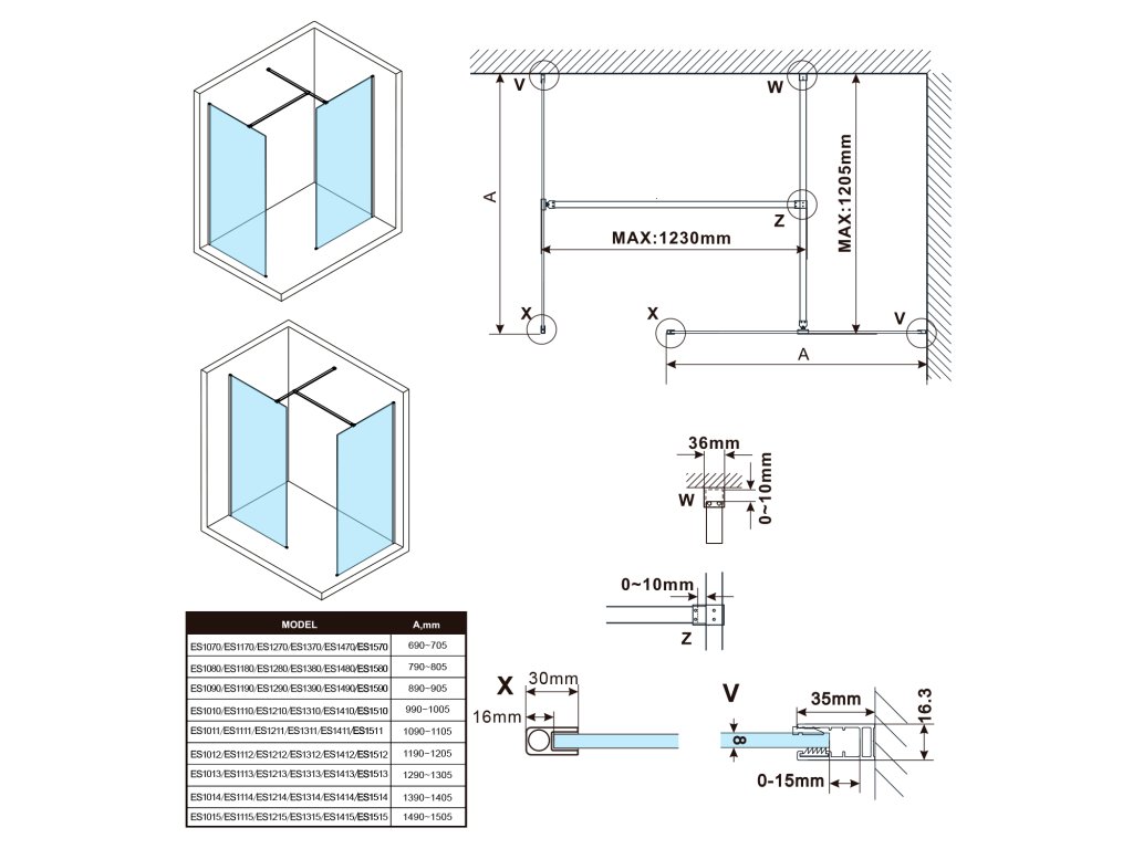 - Stenové profily s toleranciou 15 mm uľahčujú stabilnú montáž zásten, inštalácia je možná na dlažbu alebo sprchovú vaničku