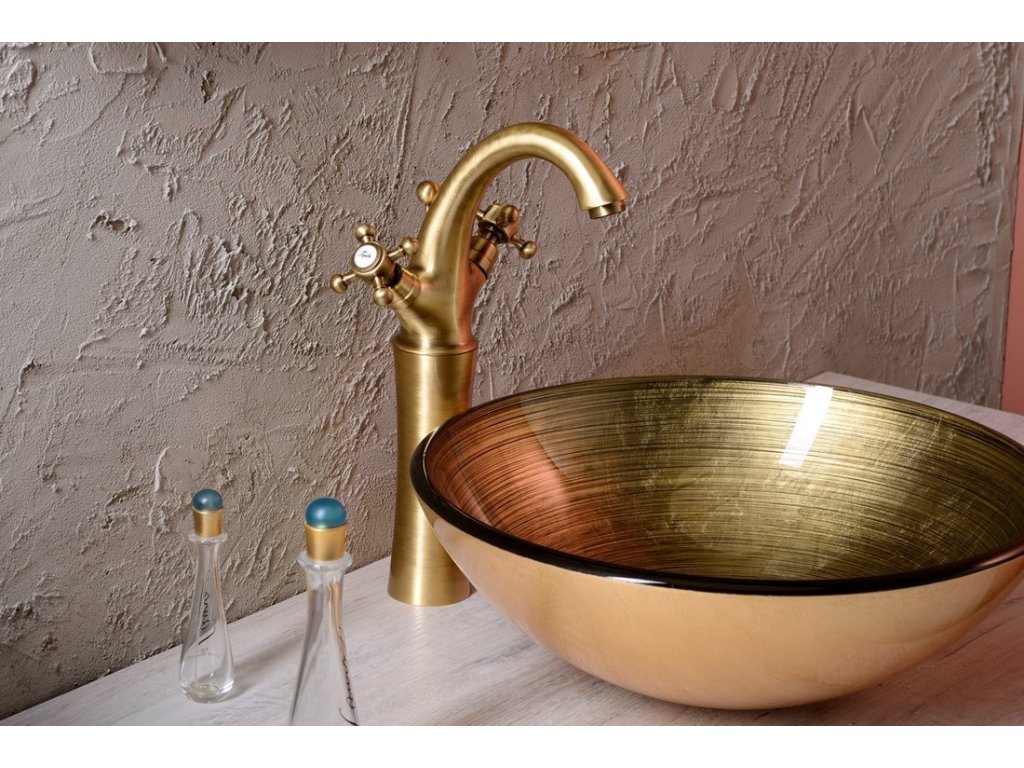 FIANNA sklenené umývadlo na dosku priemer 42cm, bronz