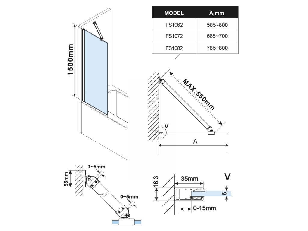 FISA vaňová zástena 700x1500mm, mm, biela mat, číre sklo