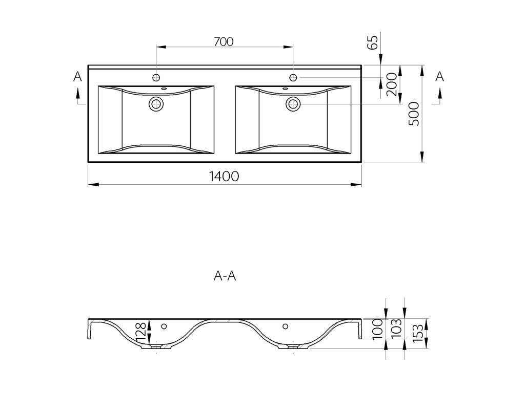 FLAVIA dvojumývadlo 140x50cm, liaty mramor, biela