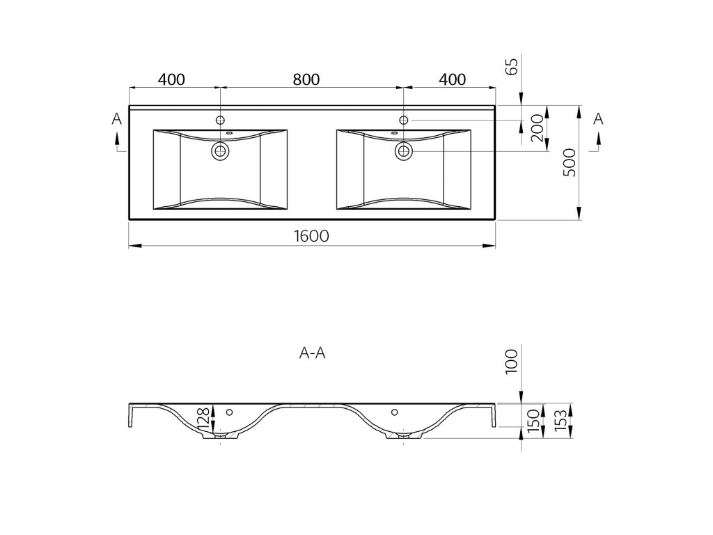 FLAVIA dvojumývadlo 160x50cm, liaty mramor, biela
