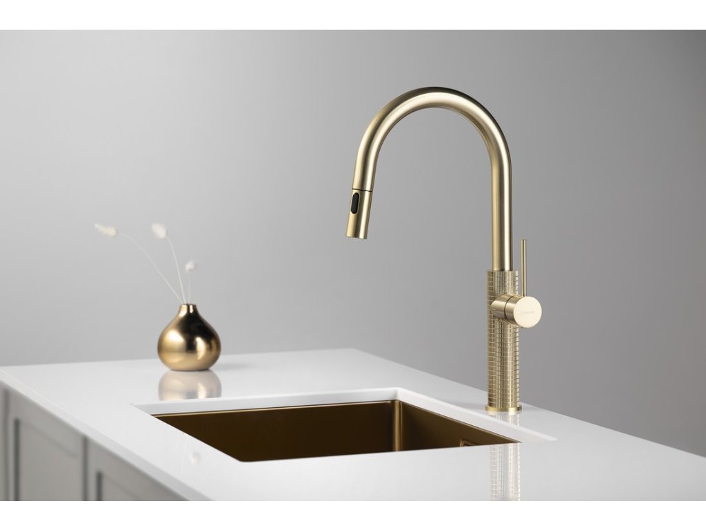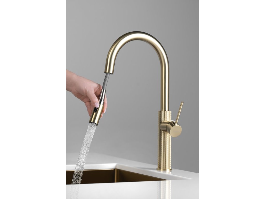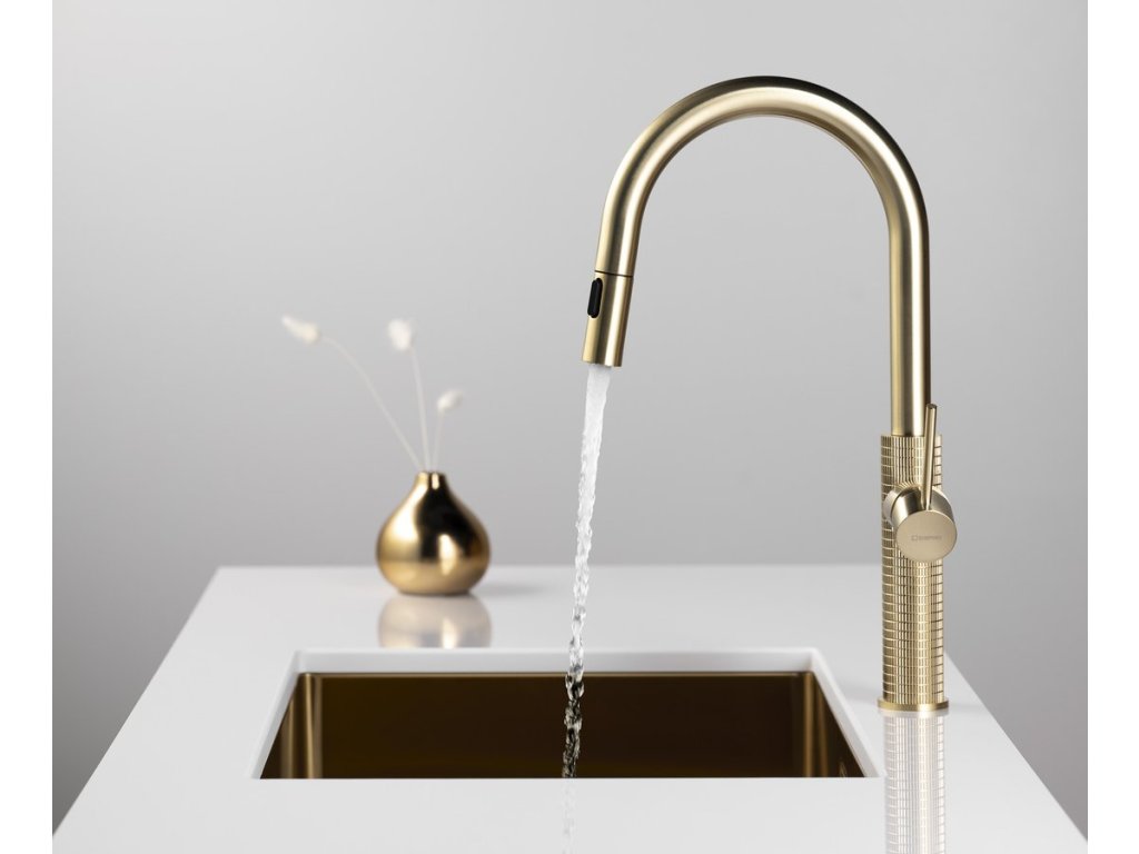 FLAWO stojánkova drezová batéria s výsuvnou sprškou, zlatá matná