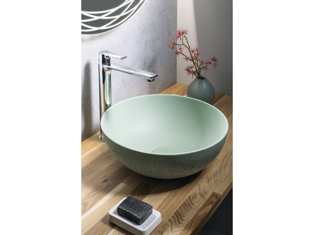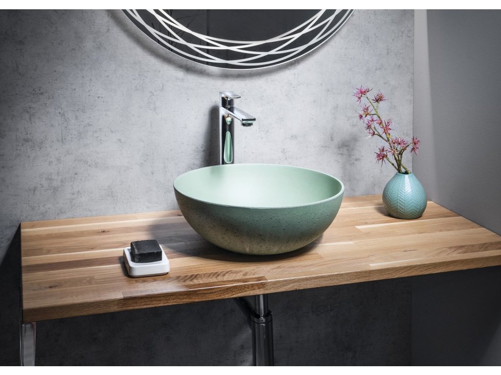 FORMIGO betónové umývadlo na dosku, priemer 39cm, zelená mat