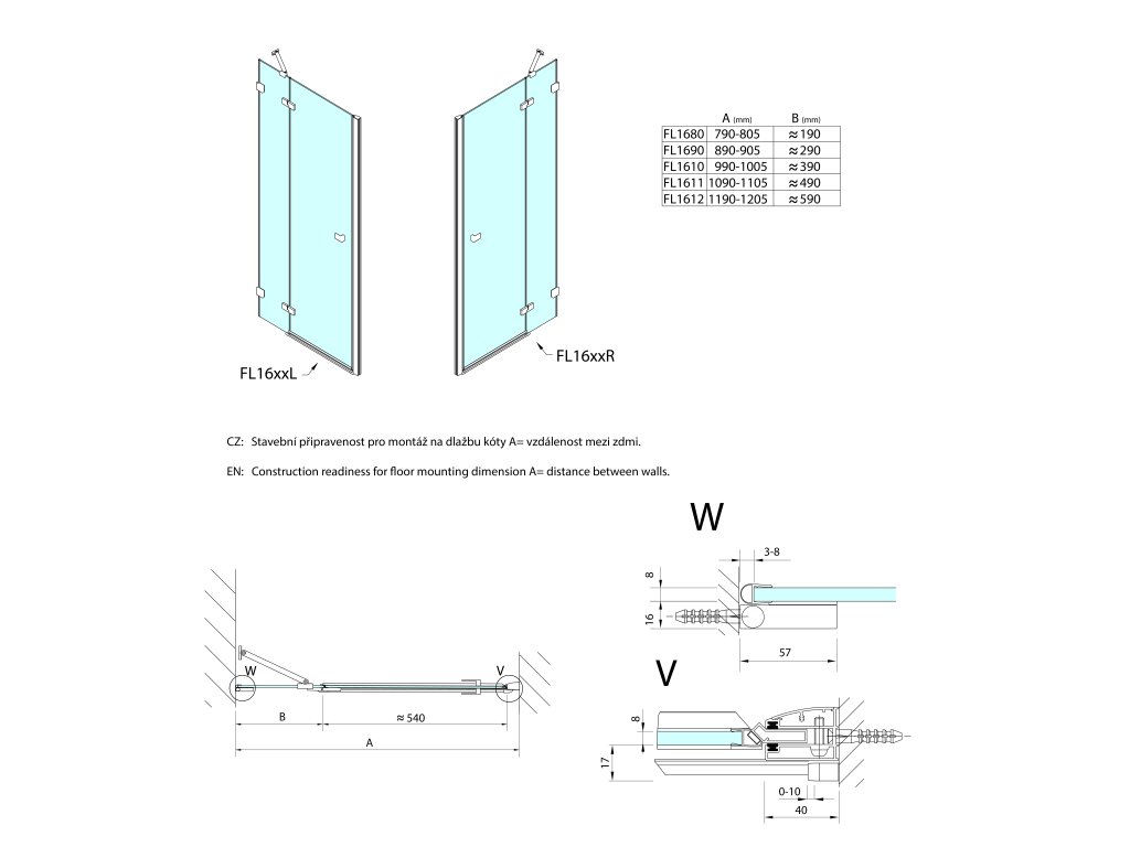 Inštalačná šírka od | 1090 mm |