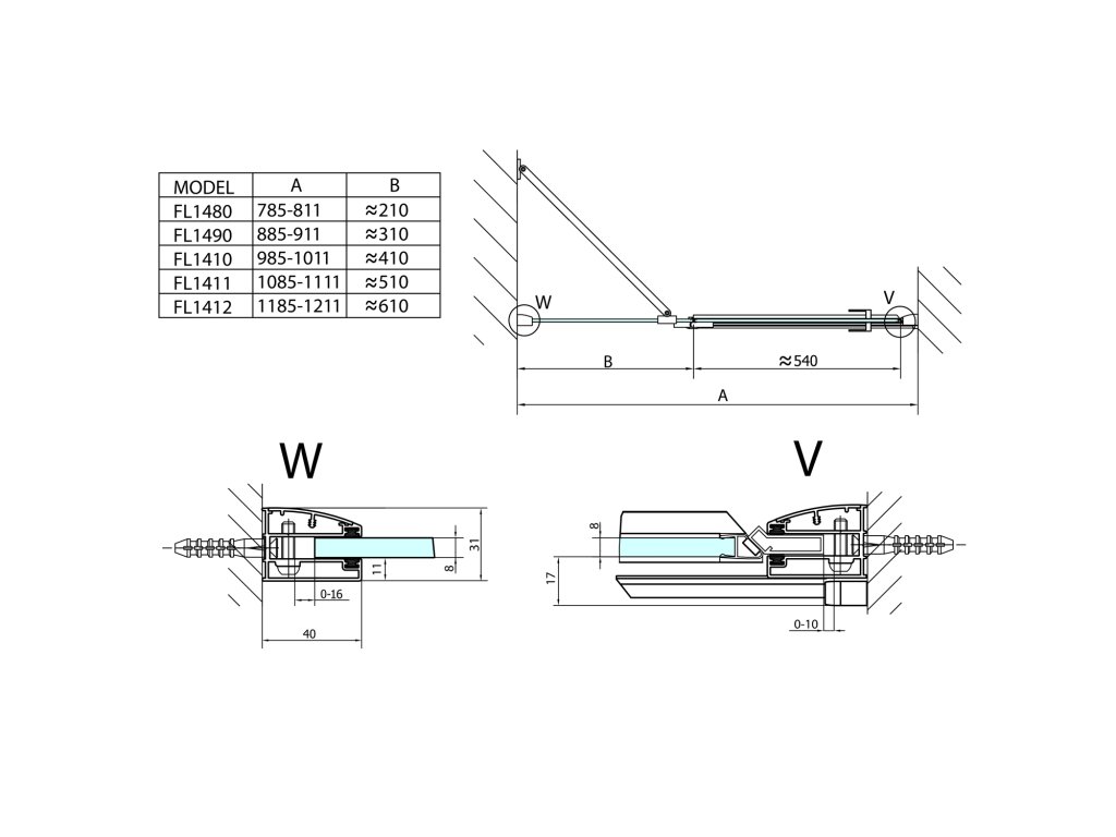 - Jednoduchá montáž pomocou nastaviteľného stenového profilu 0-16 mm