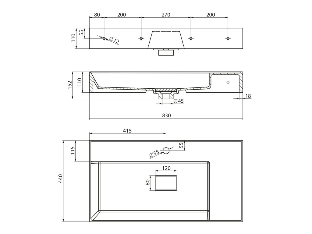 GODIVA umývadlo, liatý mramor, 83x44cm, biela
