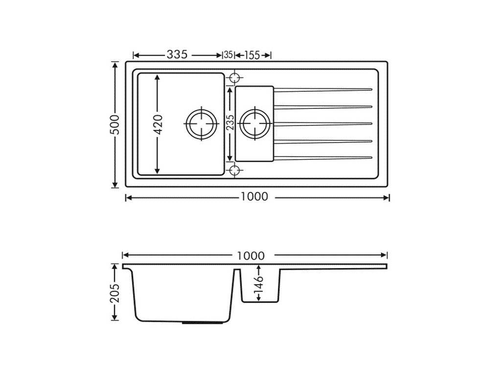 Pri modeli Granisil Vivaldi 1000.10 pohodlne umyjete vo veľkej vaničke potrebný riad a menší poslúži na oplachovanie zeleniny, ovocie, rozmrazovanie mäsa, alebo odkladanie menších kusov riadu. Zároveň Vám drez poskytne aj dostatočnú plochu na odkvapkávanie aj väčších hrncov a plechov na pečenie.