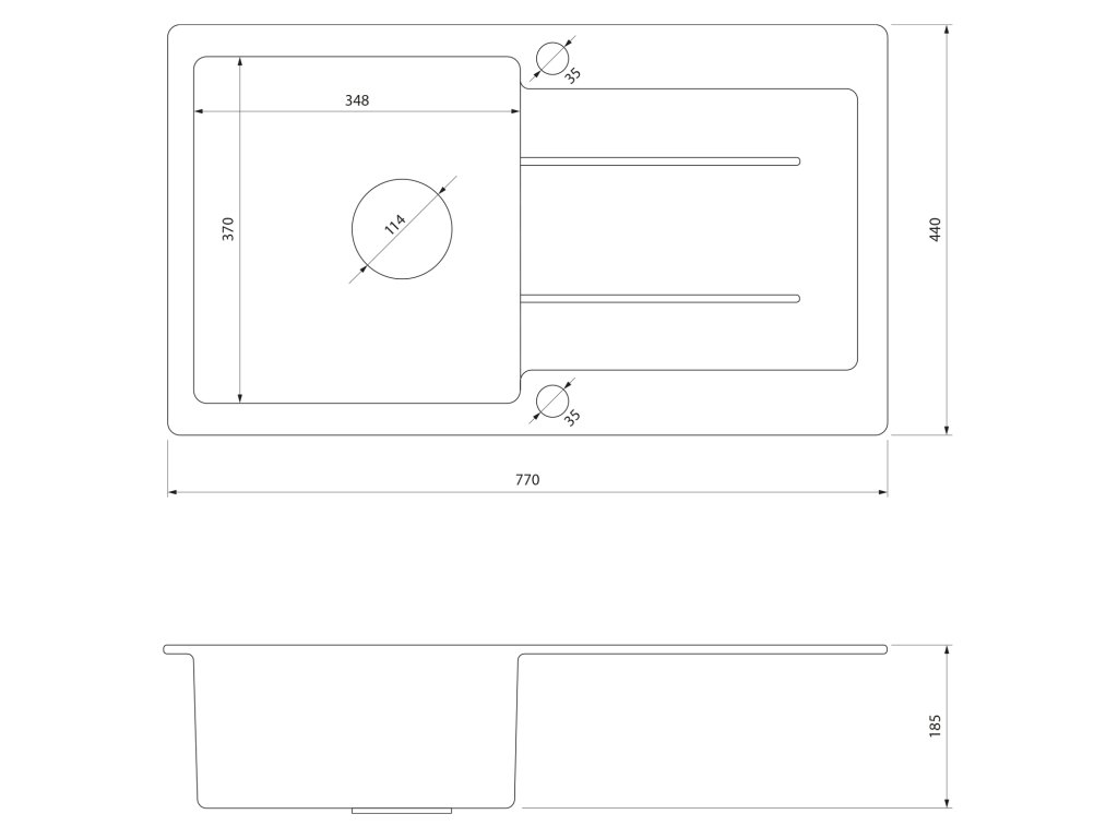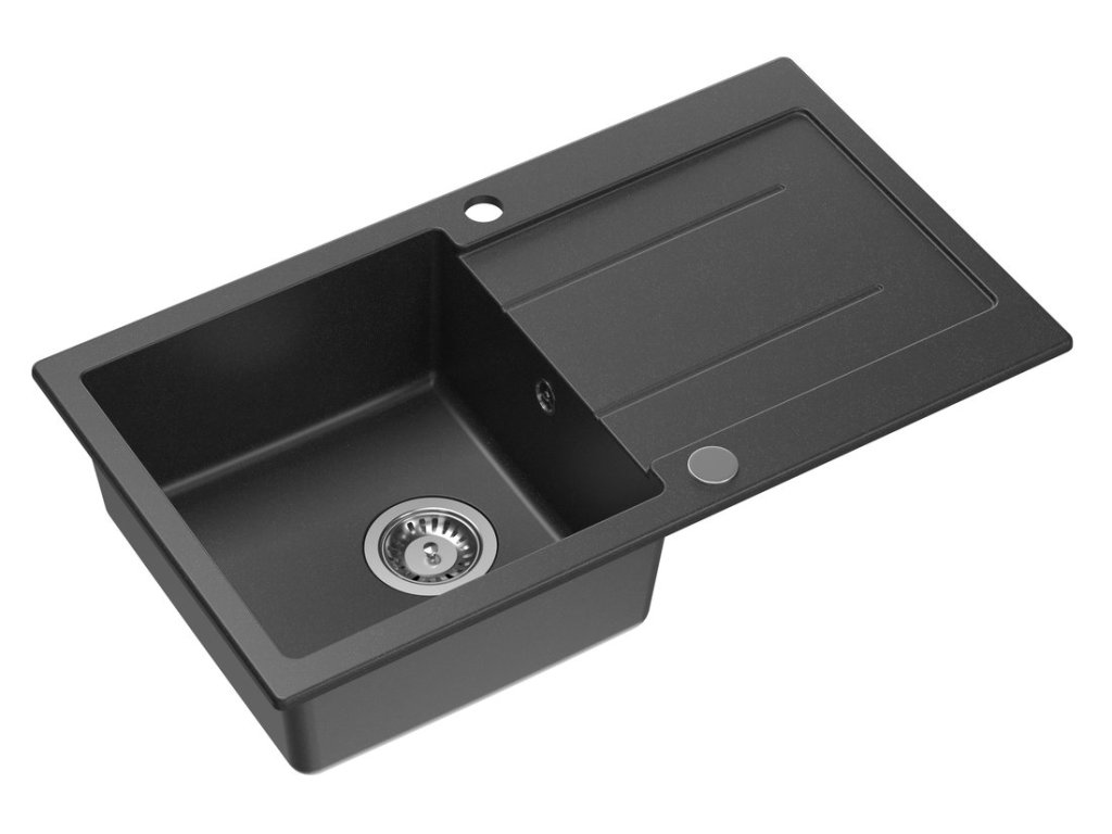 Granitový zabudovateľný drez s odkvapom, 77x44cm, čierna