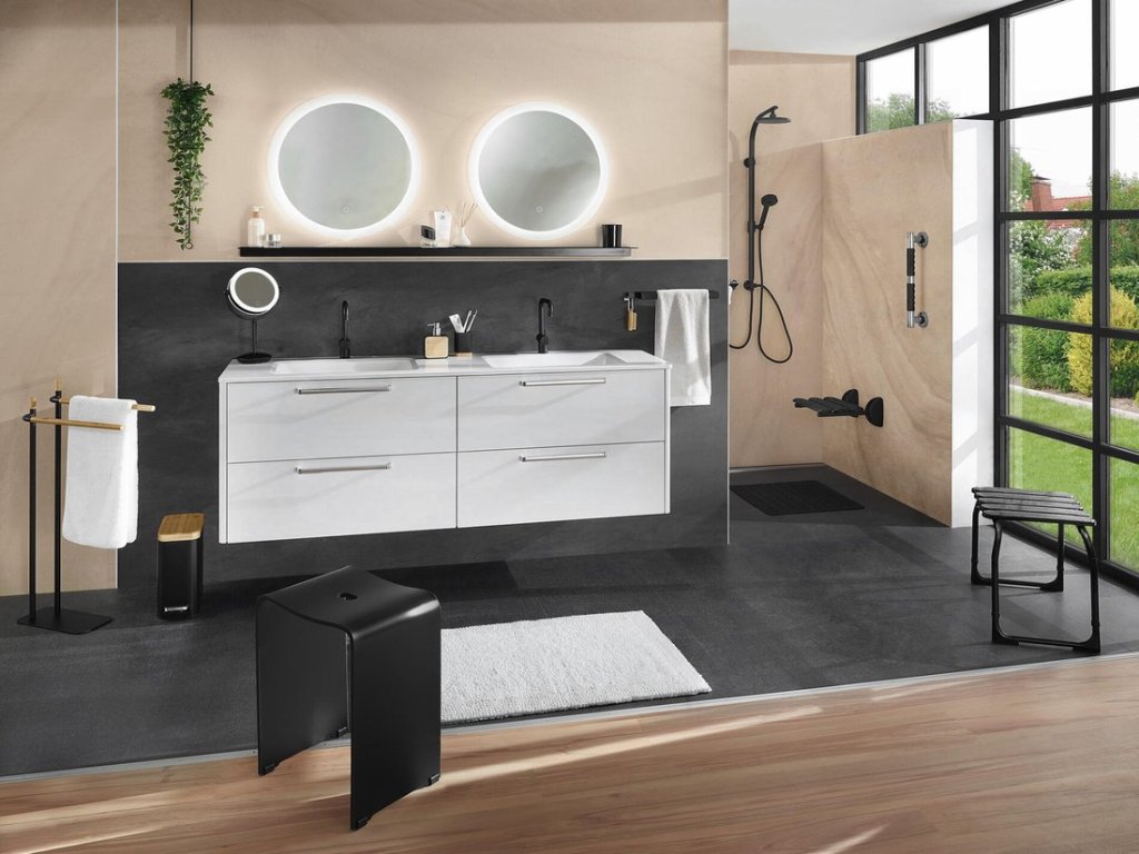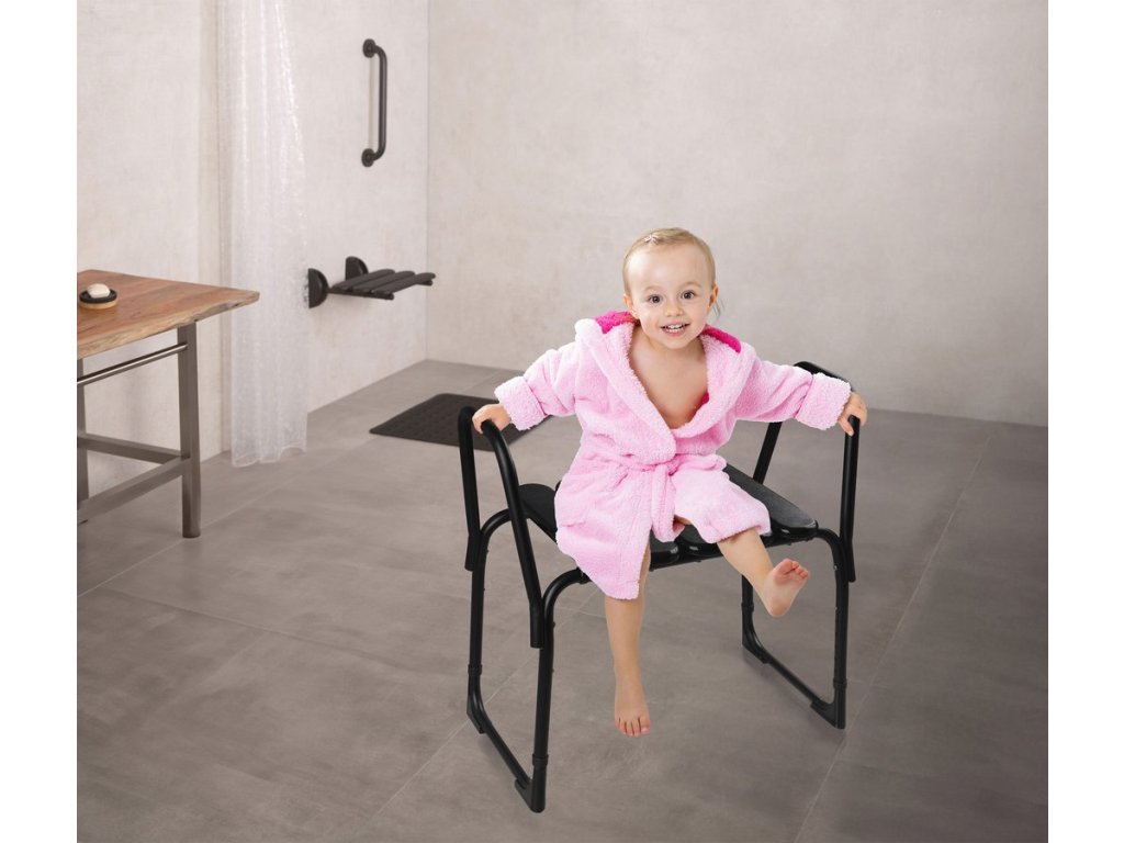 HANDICAP kúpeľňová stolička, nastavitelná výška, čierna