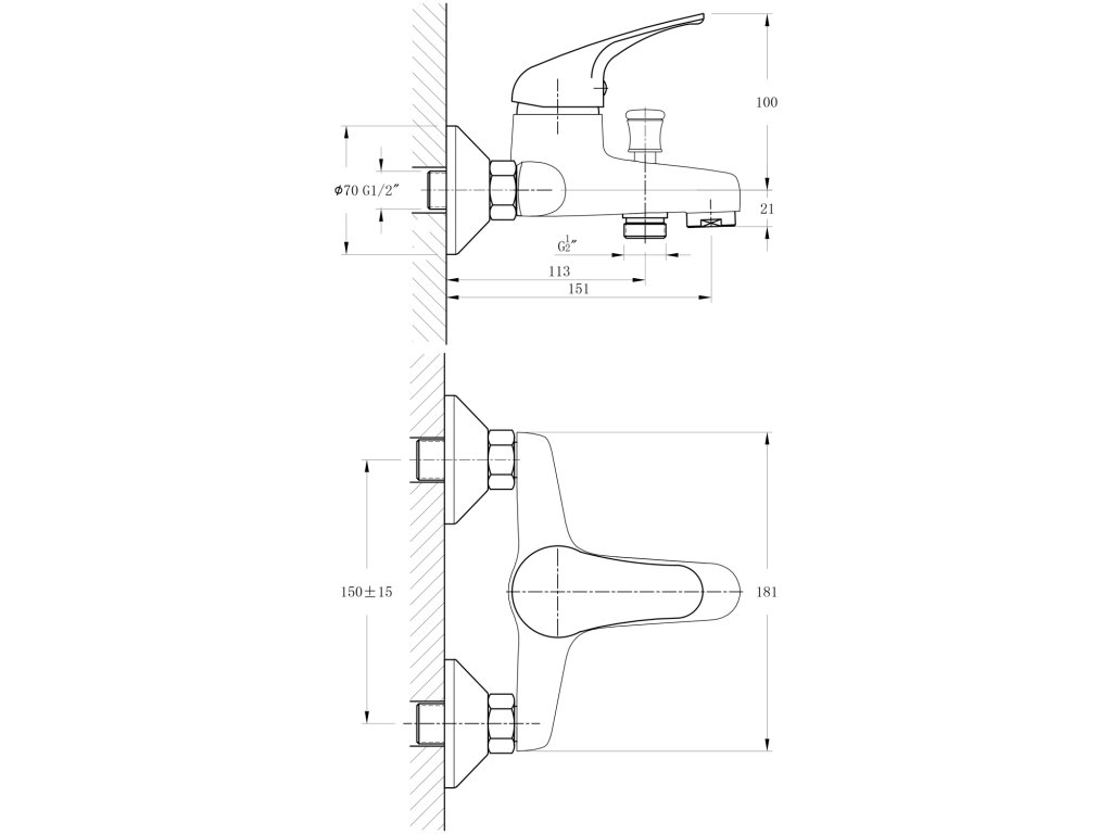 HOFFER nástenná vaňová batéria, rozteč 150mm, chróm
