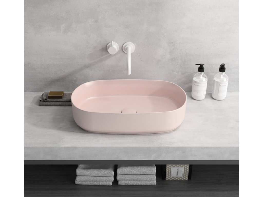 INFINITY OVAL keramické umývadlo na dosku, 55x36cm, ružová Salmon