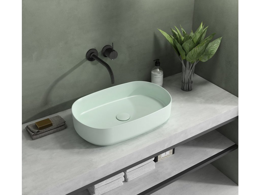 INFINITY OVAL keramické umývadlo na dosku, 55x36cm, zelena mint