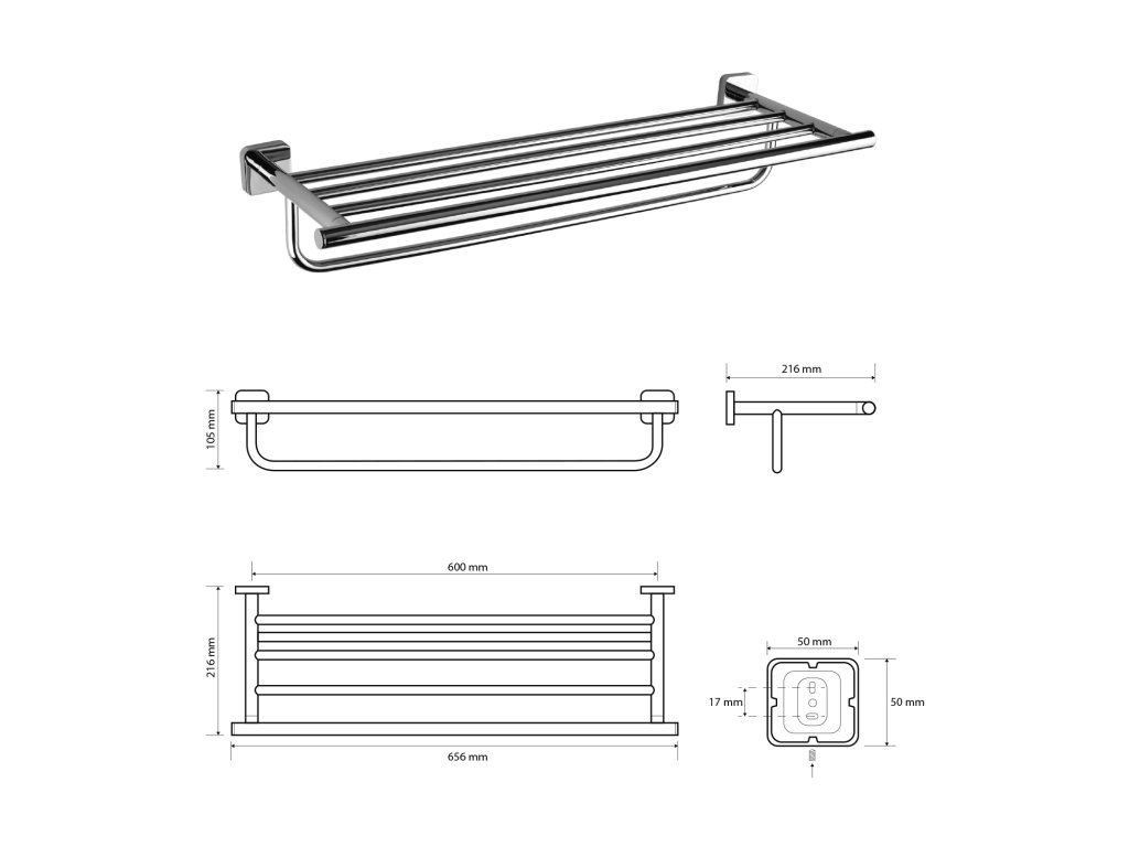 INSIA polička na uteráky s hrazdou 600mm, chróm