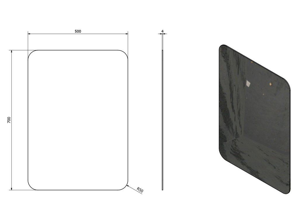 ISHAPE zrkadlo s brúseným okrajom 50x70cm, zaoblené rohy, CU free