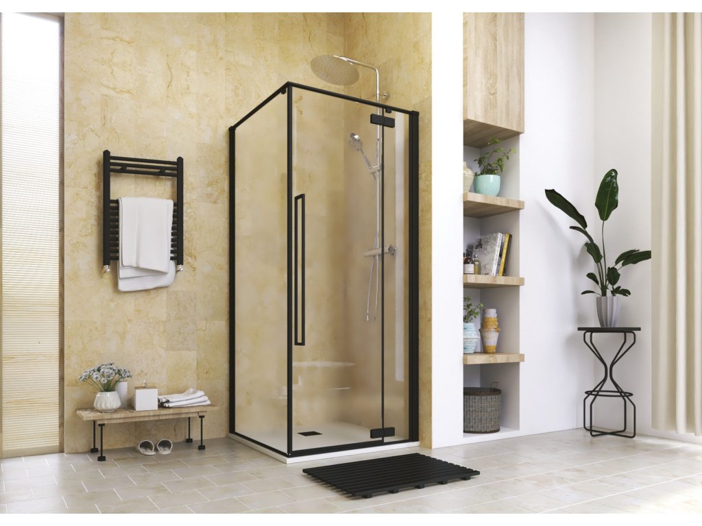 Sprchový kút štvorcový s jednými otváracími dverami Koncept čierneho dizajnu sa posúva aj do kúpeľní a je čoraz viac žiadaný a preferovaný najmä v súčasných moderných priestoroch. Séria sprchovacích kútov JAGUAR s profilmi a doplnkami v matnej čiernej ponúka viacero modelov sprchovacích kútov a sprchových dverí so širokou rozmerovou paletou. Naviac v kombinácii s fixnou bočnou sklenenou stenou rieši táto séria priestorovú variabilitu jednotlivého zákazníka. Neodmysliteľnou samozrejmosťou tejto modelovej série je impregnácia skiel antiplakovou úpravou TEKNO.cal. Dokonalú stabilitu masívnych sklenených plôch v hrúbke skla 8 mm a výške 202 cm dodatočne podporuje nenápadný horný stabilizačný rám. Tento v kombinácii spolu s predĺženým štíhlym úchytom dverí umocňujú vizuálny efekt progresívnej elegancie s ohľadom na pohodlnú manipuláciu pri používaní. UPOZORNENIE! Pri výbere sprchového kúta je veľmi dôležitý inštalačný rozmer tzv. ROZTIAHNUTIE PROFILOV , ktorý nájdete v tabuľke. Roztiahnutie určuje minimálny a maximálny rozmer sprchového kúta. Sprchové kúty Aquatek sú dodávané BEZ SPRCHOVEJ VANIČKY . Vhodné vaničky a iné príslušenstvo nájdete pod záložkou SÚVISIACE PRODUKTY.Dodatočné parametre