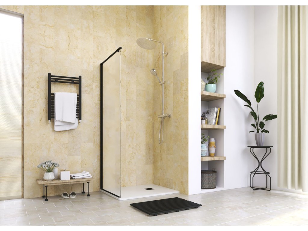 Pevná stena do kombinácie Pevný panel JAGUAR F1 je dodávaný iba v kombinácii s otváracími dverami JAGUAR B5. Koncept čierneho dizajnu sa posúva aj do kúpeľní a je čoraz viac žiadaný a preferovaný najmä v súčasných moderných priestoroch. Séria sprchovacích kútov JAGUAR s profilmi a doplnkami v matnej čiernej ponúka viacero modelov sprchovacích kútov a sprchových dverí so širokou rozmerovou paletou. Naviac v kombinácii s fixnou bočnou sklenenou stenou rieši táto séria priestorovú variabilitu jednotlivého zákazníka. Neodmysliteľnou samozrejmosťou tejto modelovej série je impregnácia skiel antiplakovou úpravou TEKNO.cal. Dokonalú stabilitu masívnych sklenených plôch v hrúbke skla 8 mm a výške 200 cm dodatočne podporuje nenápadný horný stabilizačný rám. UPOZORNENIE! Pri výbere sprchového kúta je veľmi dôležitý inštalačný rozmer tzv. ROZTIAHNUTIE PROFILOV , ktorý nájdete v tabuľke. Roztiahnutie určuje minimálny a maximálny rozmer sprchového kúta. Sprchové kúty Aquatek sú dodávané BEZ SPRCHOVEJ VANIČKY . Vhodné vaničky a iné príslušenstvo nájdete pod záložkou SÚVISIACE PRODUKTY.Dodatočné parametre